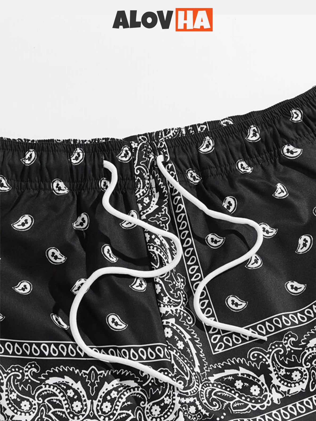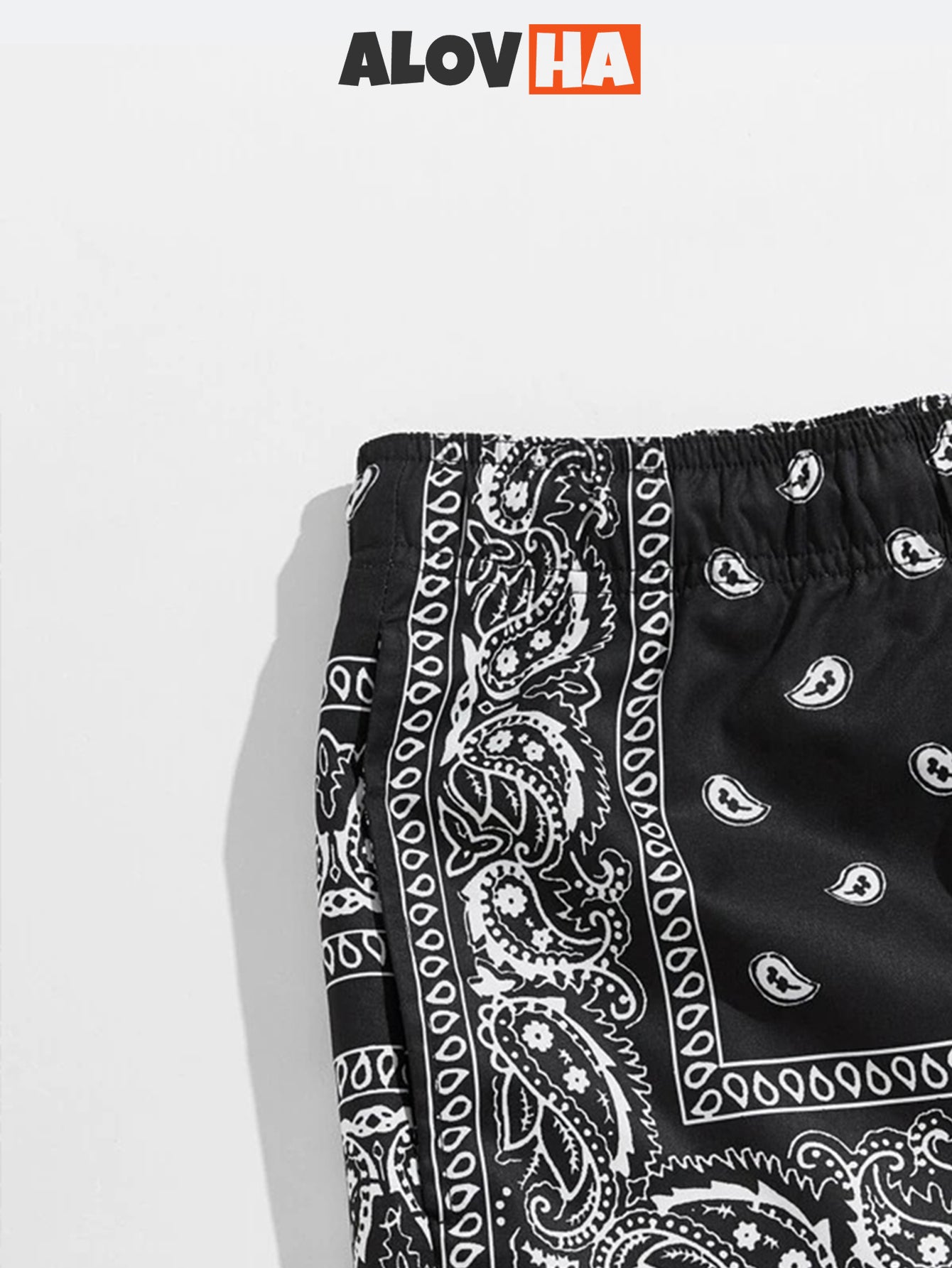 Mens Hawaiian Floral Paisley Lightweight Graphic Pull On Board Shorts