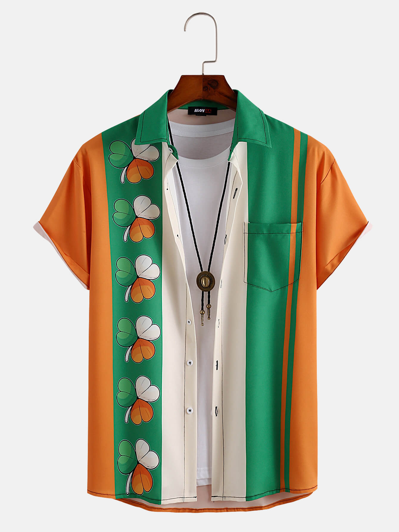 Mens St. Patrick's Day Lucky Clover Short Sleeve Button Up Shirt Hawaiian Shirt