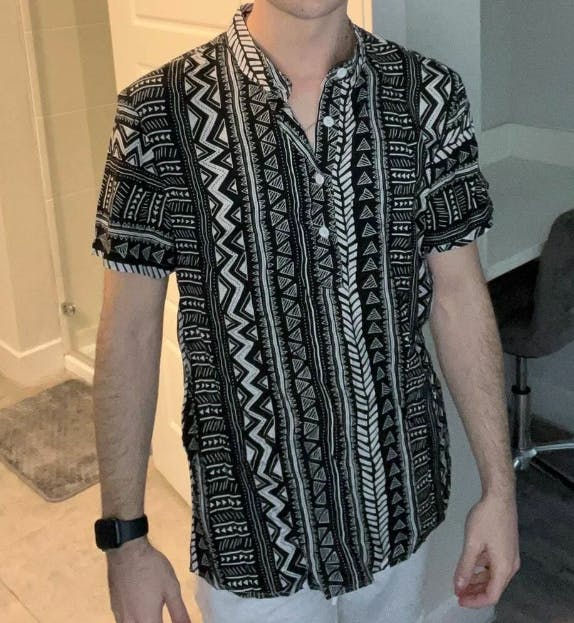 Mens Vintage Striped Short Sleeve Button Up Collared Retro Shirt