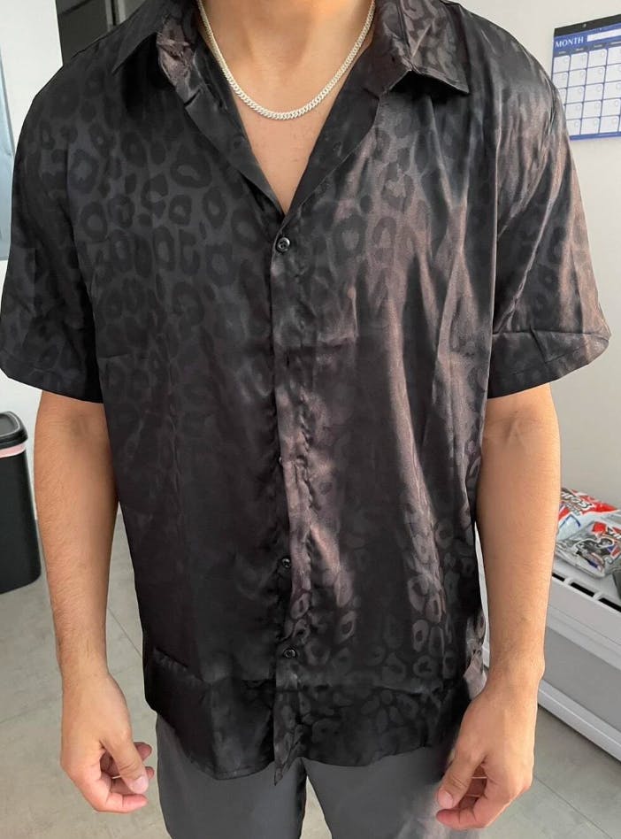 Men's Wild Leopard Print Short Sleeve Button Up Shirt