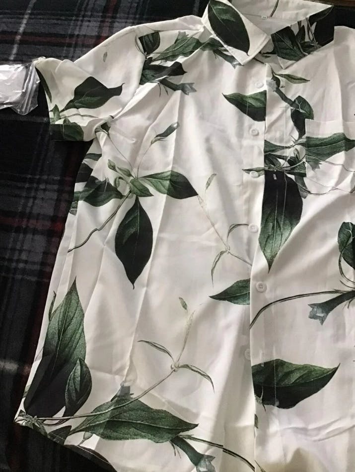 Mens Hawaiian Vintage Floral Plant Short Sleeve Button Up Shirt