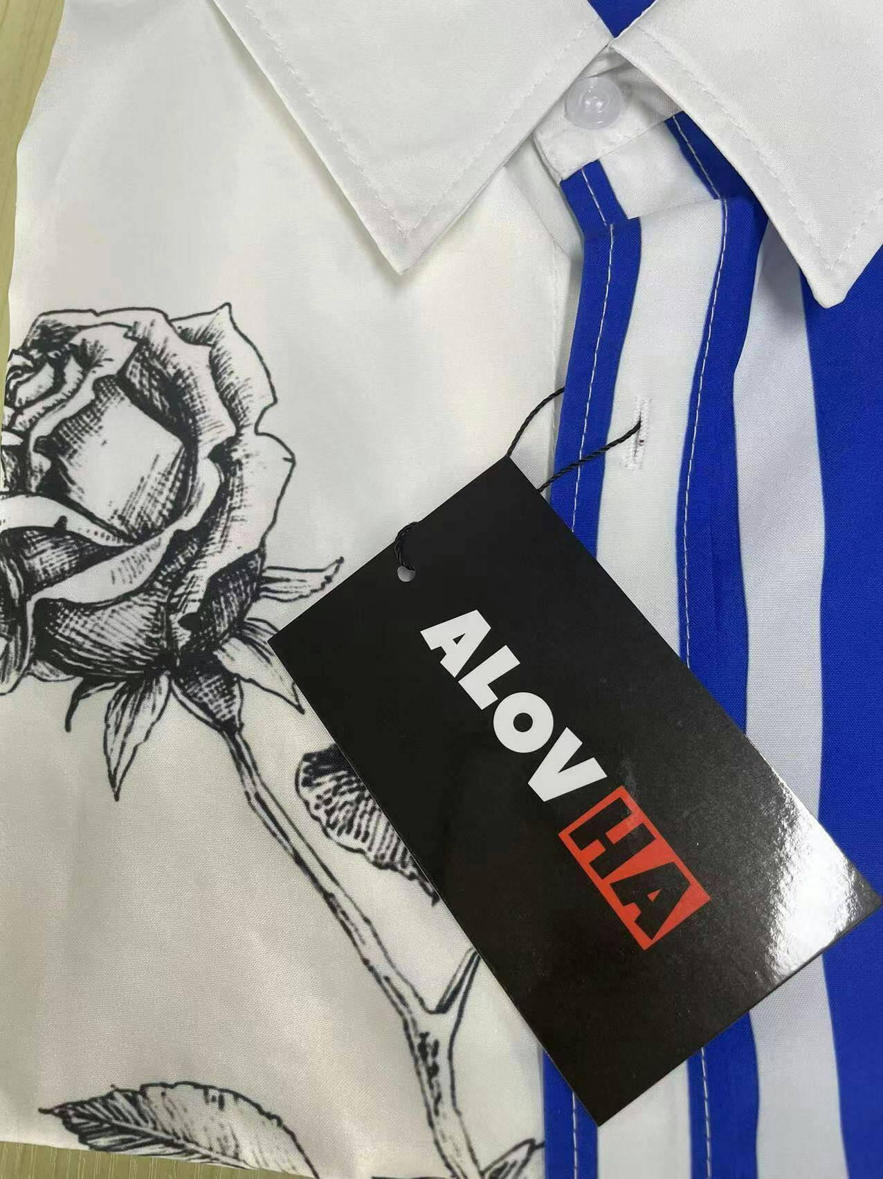 Mens Hawaiian Floral Patchwork Short Sleeve Button Up Collared Two Tone Vacation