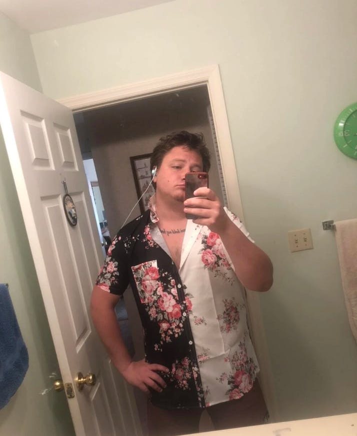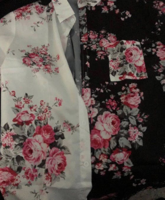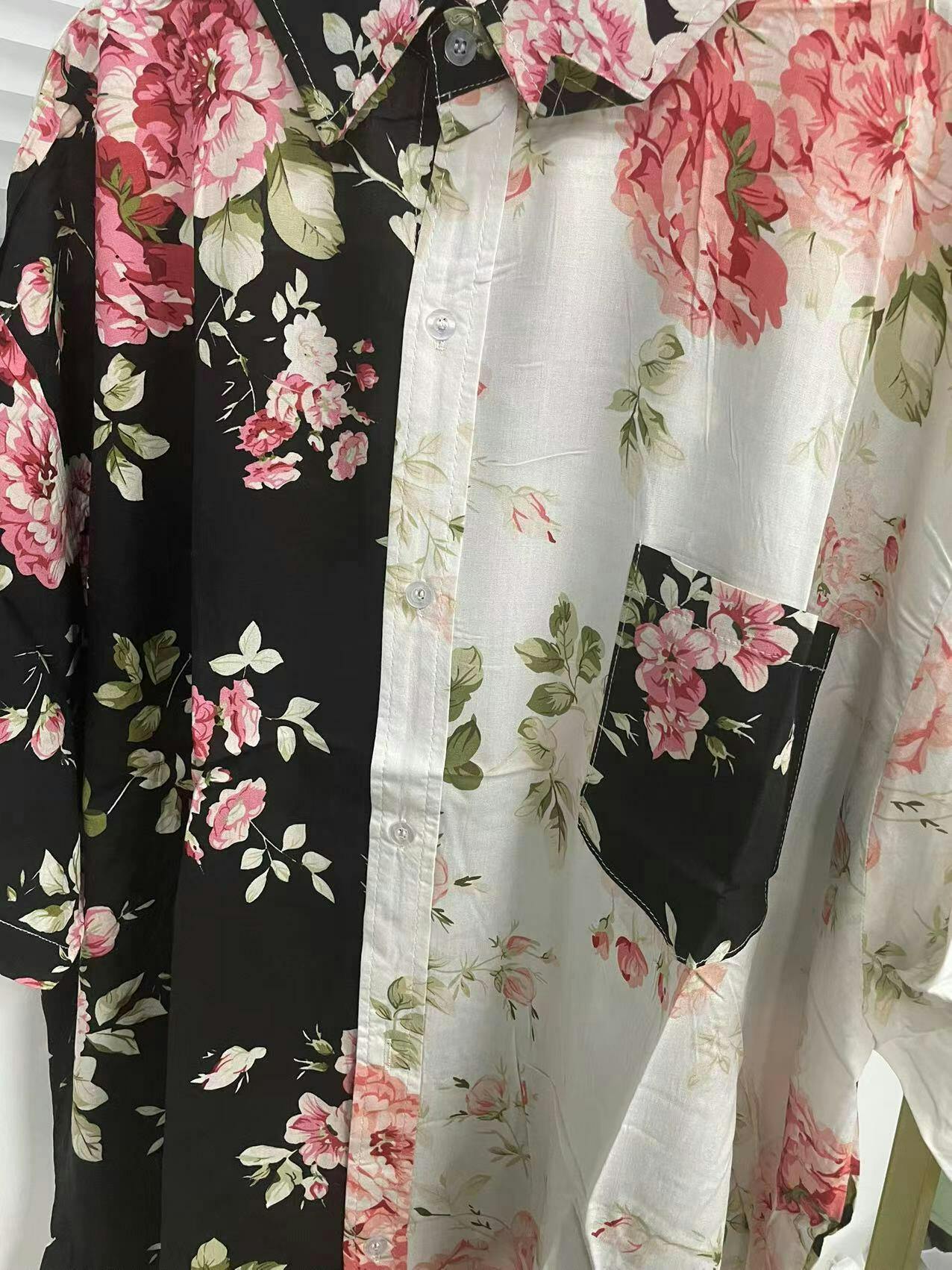 Mens Hawaiian Floral Patchwork Short Sleeve Button Up Collared Two Tone Vacation Shirt