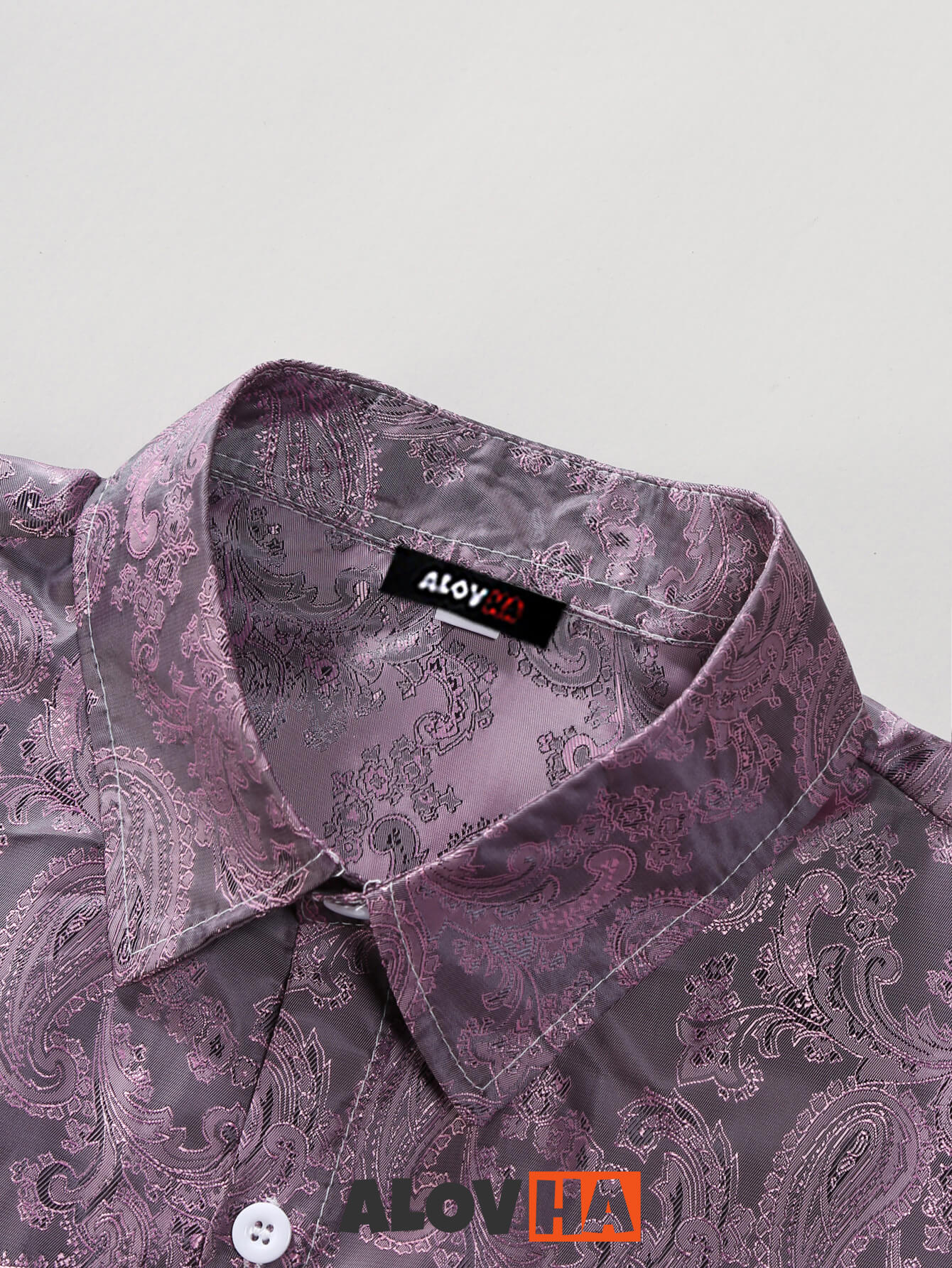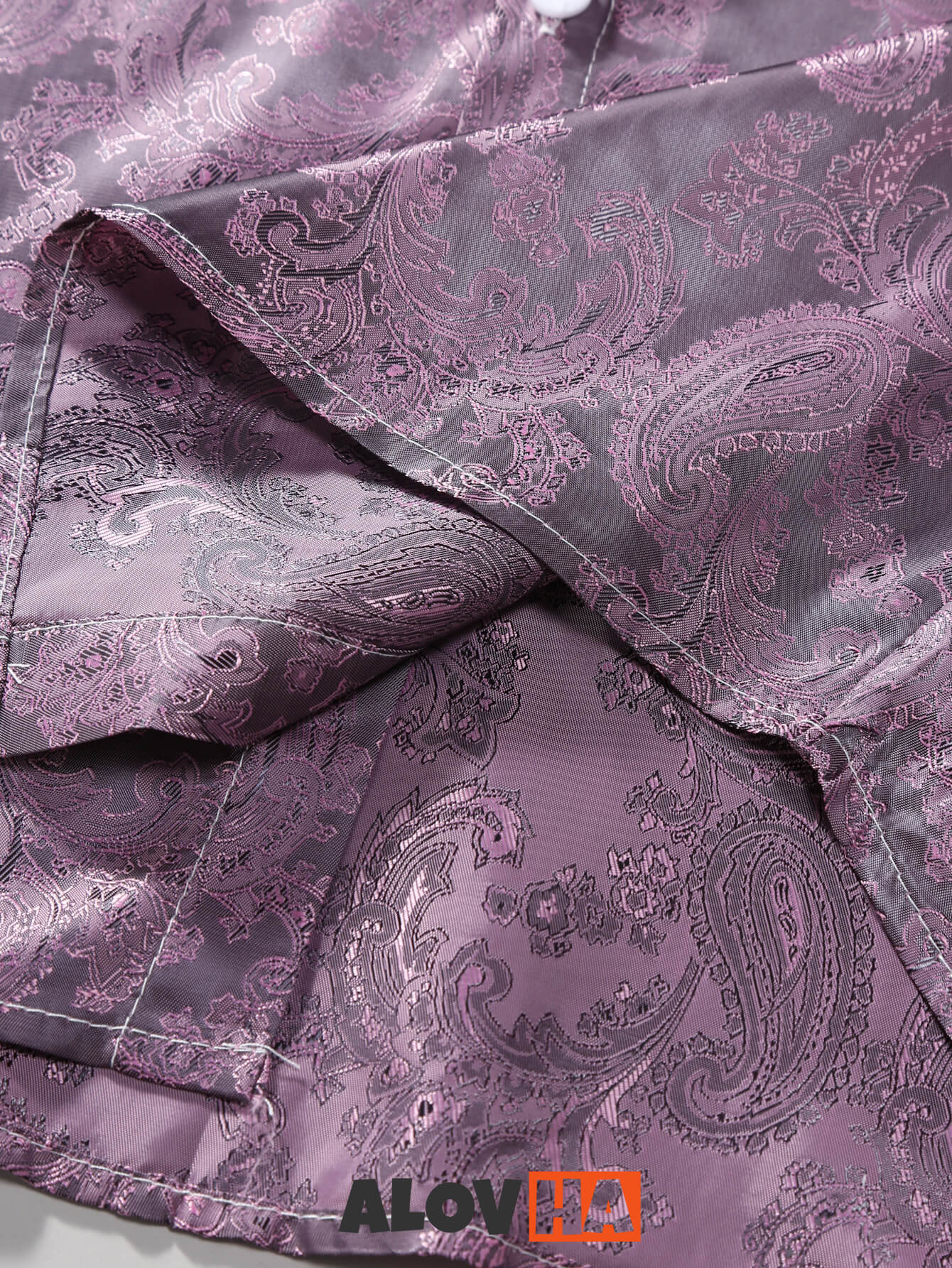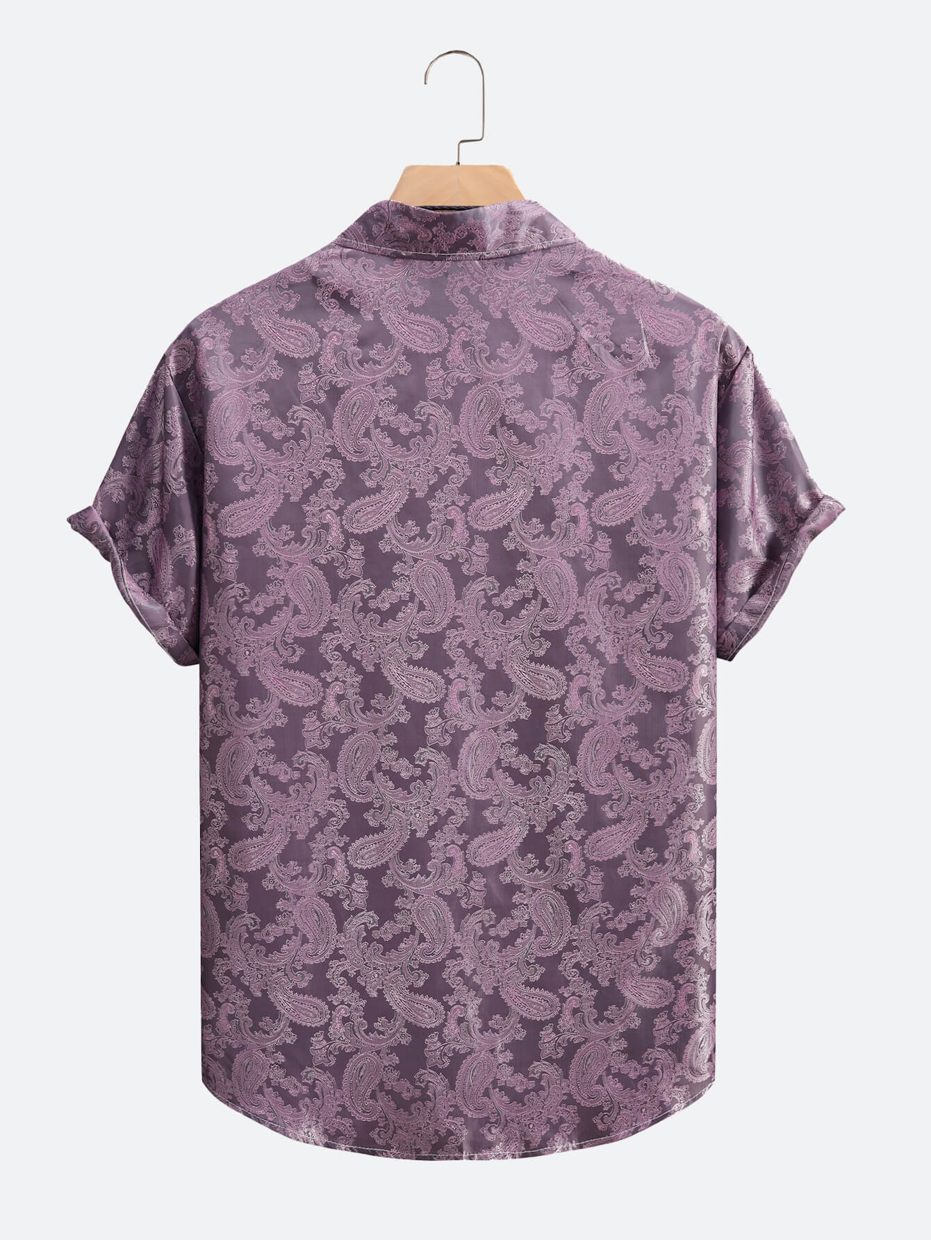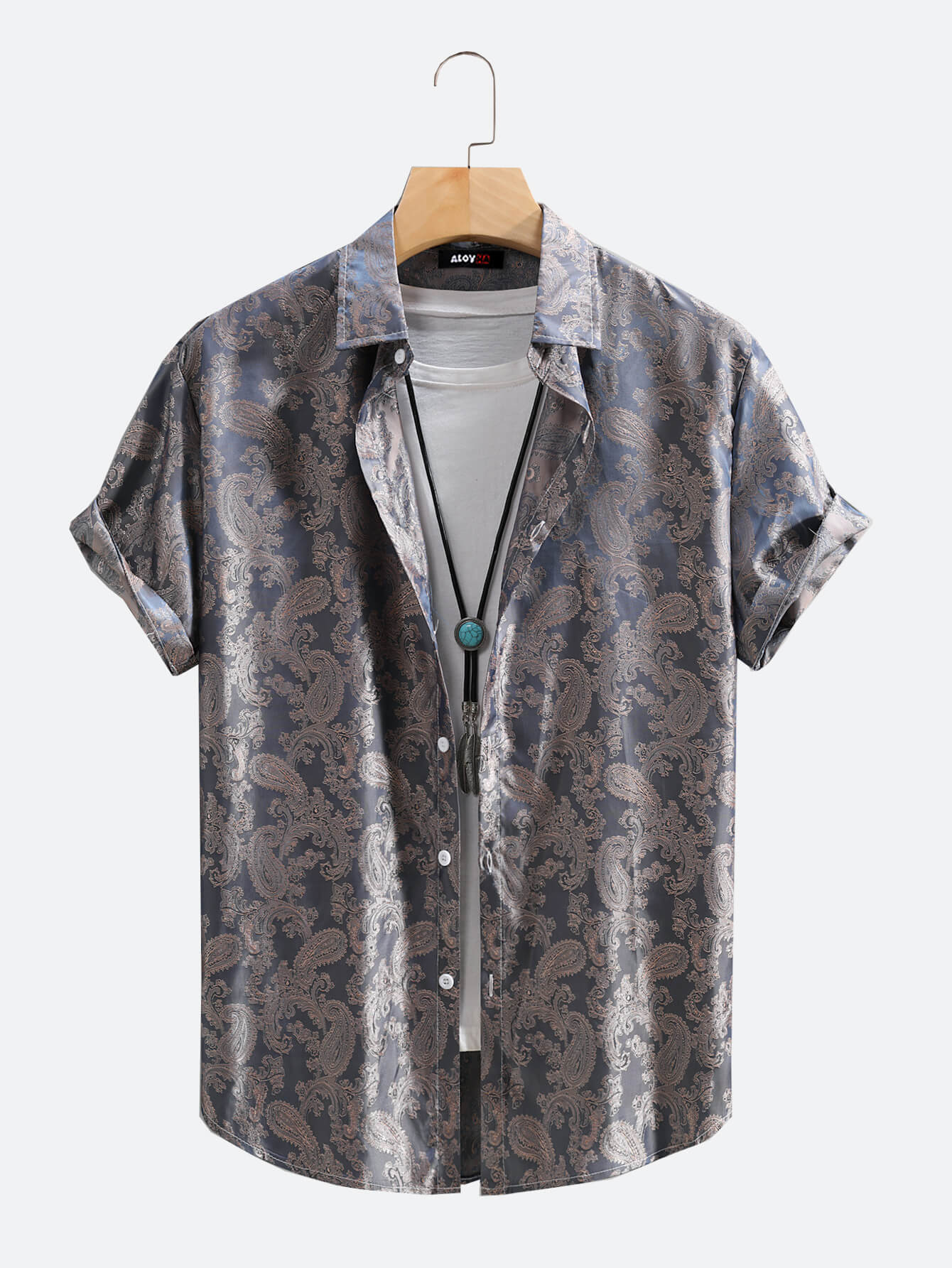 Mens Silky Satin Floral Paisley Plain Solid No Iron Short Sleeve Button Up Collared Vacation Shirt