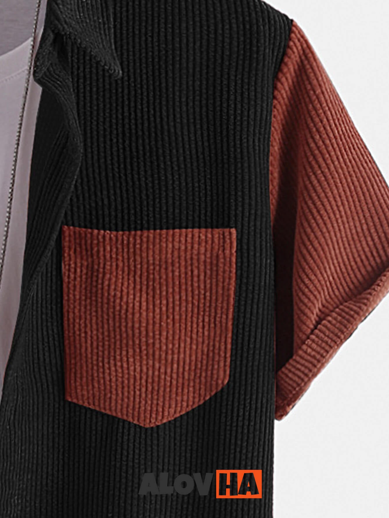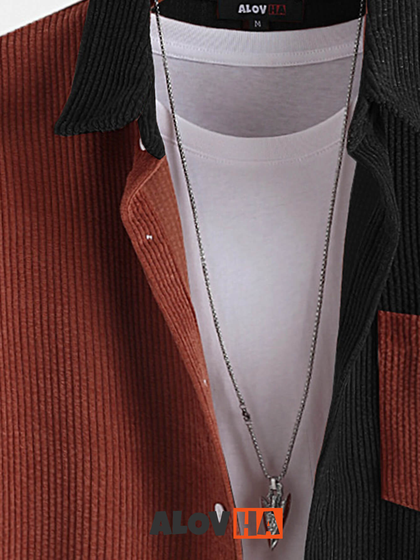 Mens Two-Piece Matching Set ColorBlock Corduroy