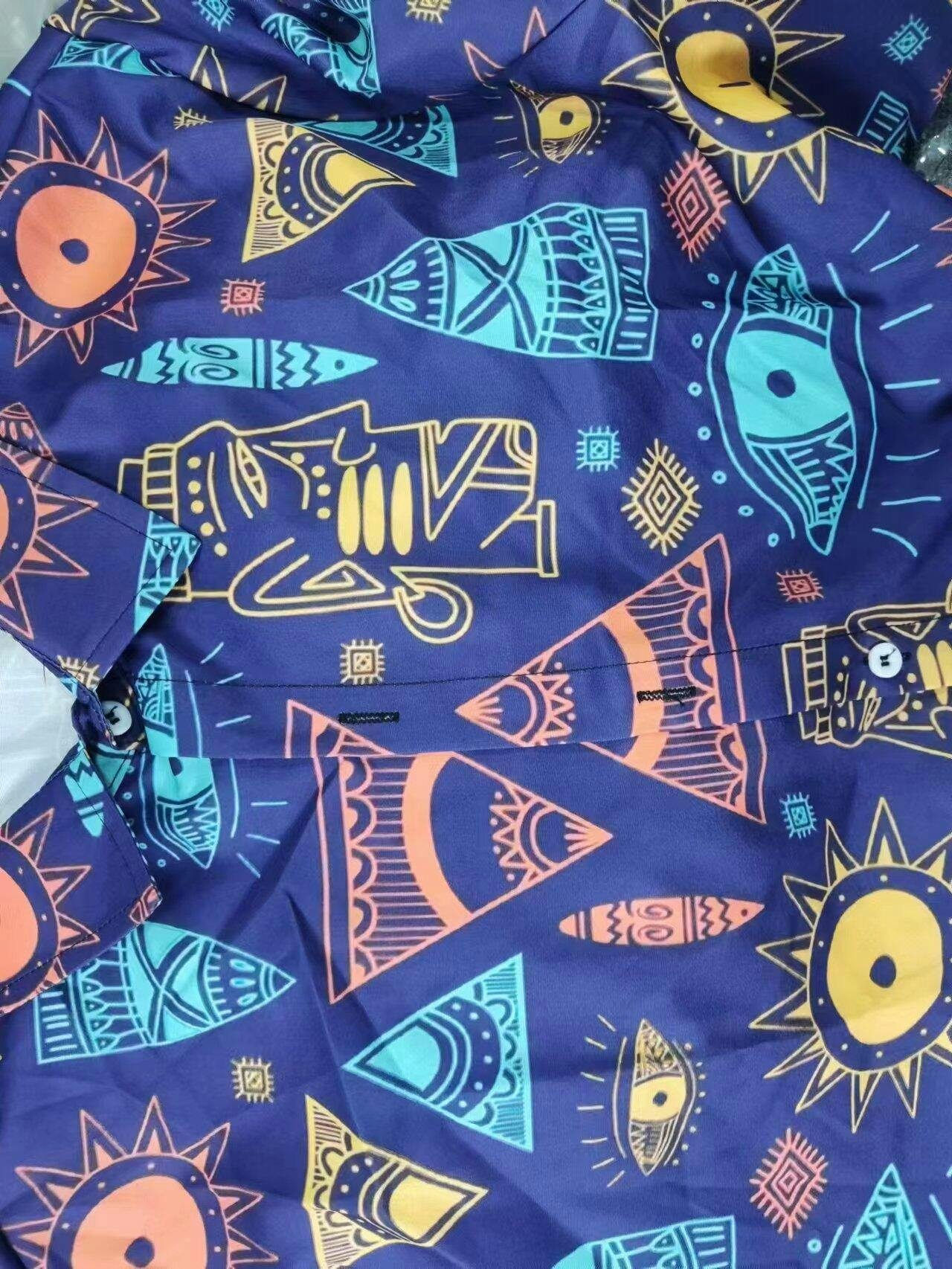 Camisa de playa de manga corta con estampado tribal étnico vintage para hombre Pirámide y estampado de escritura